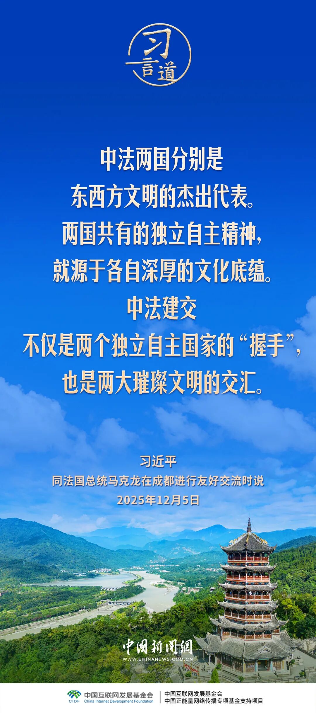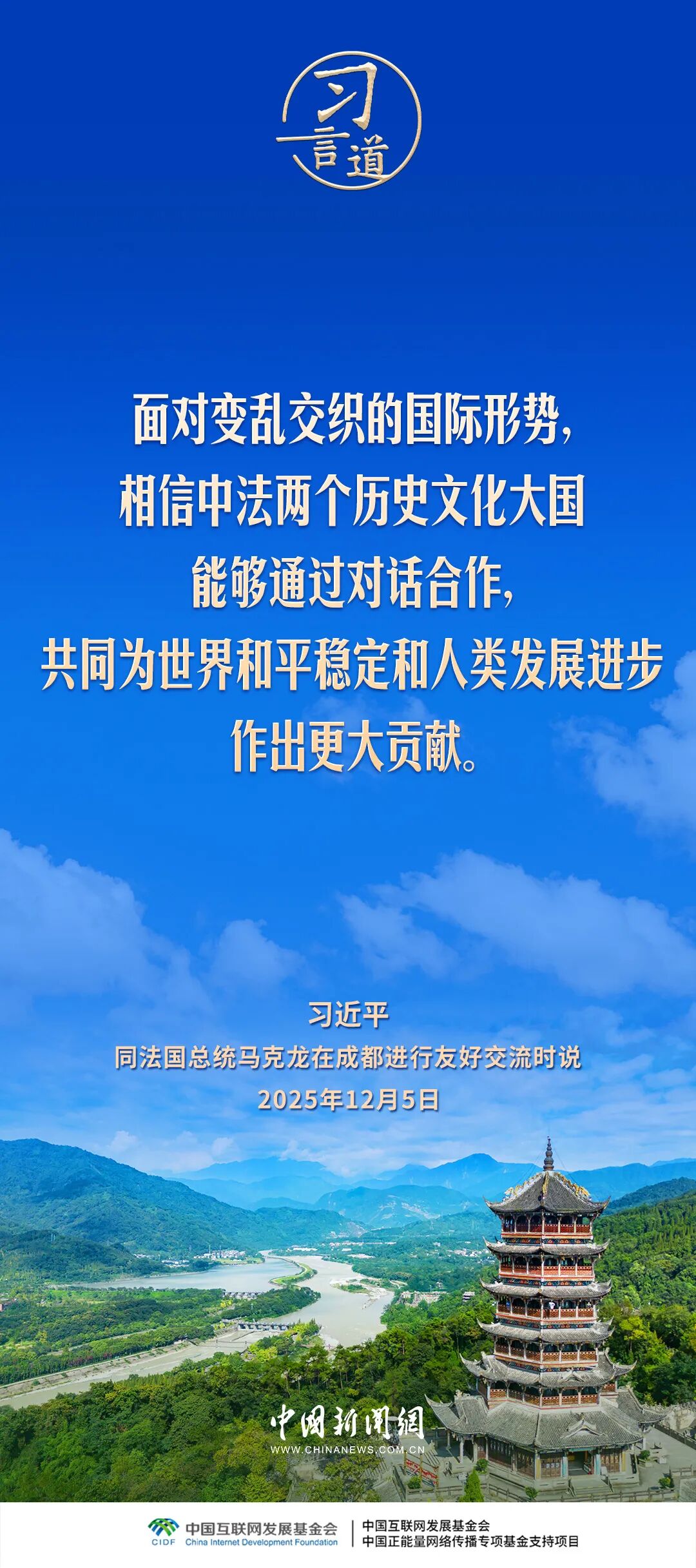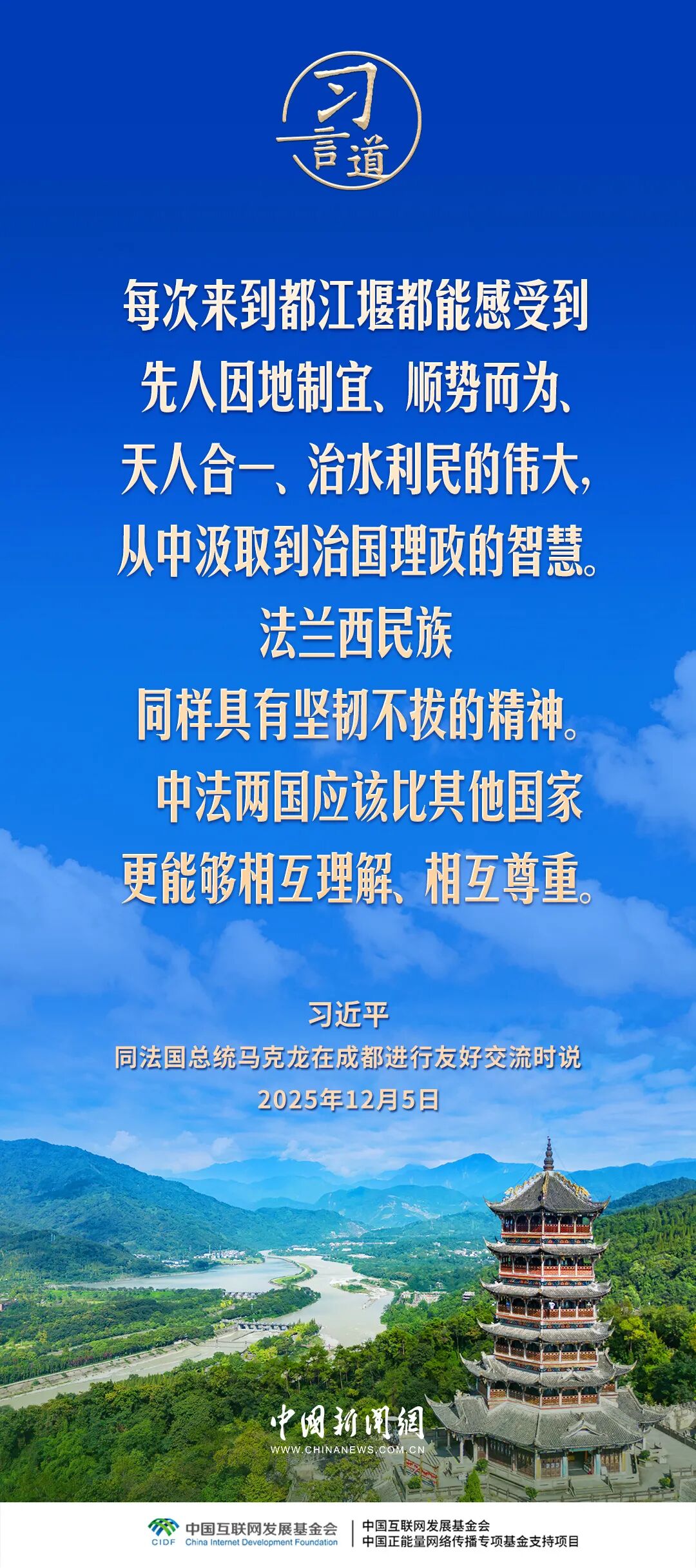 12月5日,國家主席習(xí)近平在四川省成都市都江堰同法國總統(tǒng)馬克龍進(jìn)行友好交流。習(xí)近平指出——