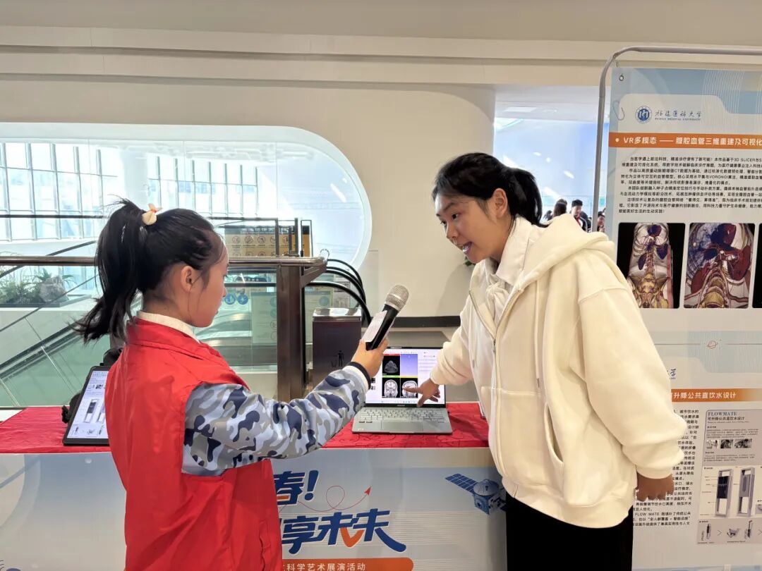 活動吸引了福州大學、福建師范大學、福建農林大學等12所高校積極參與,參賽選手多達400余名。101件入圍線下展示的優秀作品集中亮相,內容涵蓋科技發明、編程設計、畢業設計等多個領域,為現場觀眾呈現了一場科學與藝術交融的視聽盛宴。活動期間,來自晉安區中小學的200余名少先隊員沉浸式打卡科學藝術展演現場,采訪大學生科創作者、交流探索感悟,把科學好奇變化作成長動力。