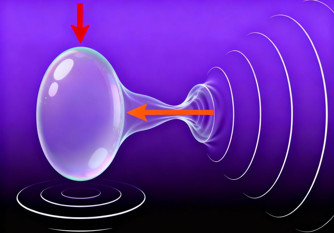 氣泡繼續(xù)介紹道:“普通氣泡之所以容易破裂,是因為氣泡膜的厚薄度不均勻。而在聲懸浮的環(huán)境中,聲波為我提供了一層無形的‘保護罩’,讓我能夠更穩(wěn)定地懸浮在空中。”
