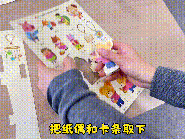 把紙偶和卡條插成十字形,