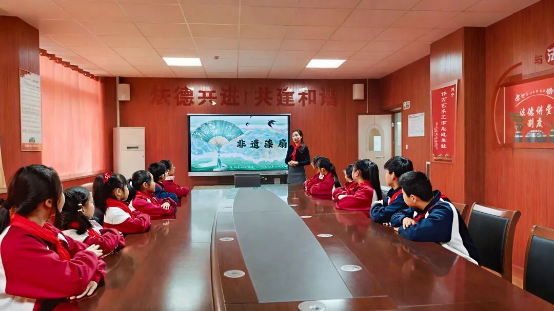 活動伊始,大隊輔導員張蔓老師為隊員們帶來了題為《穿越千年的光彩——非遺漆扇》的精彩分享。從漆器的起源、陽江漆器的發展歷程,到一件漆器背后的工序與匠心,張老師用生動的語言與豐富的圖片,將隊員們帶入一個漆光流轉的藝術世界。