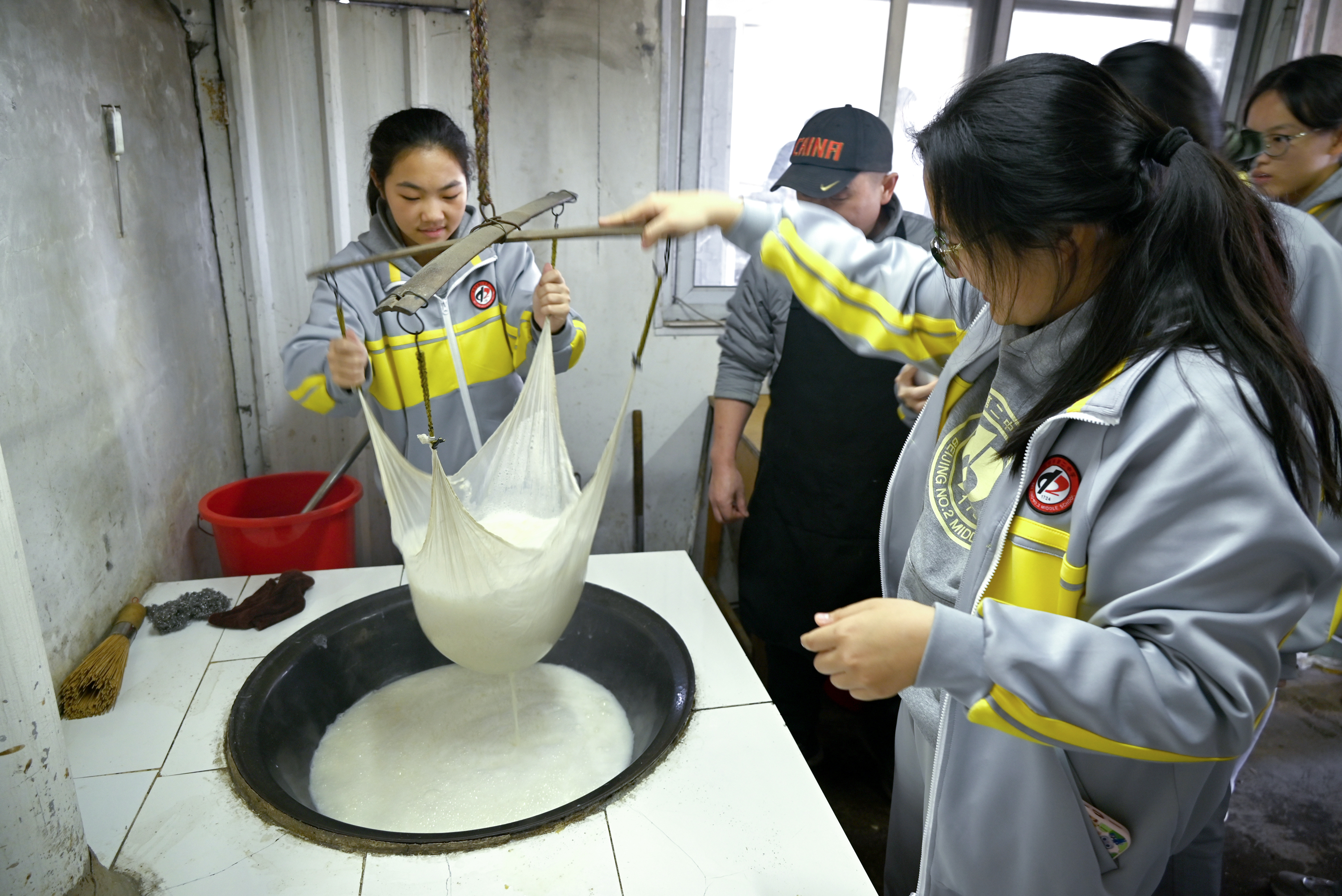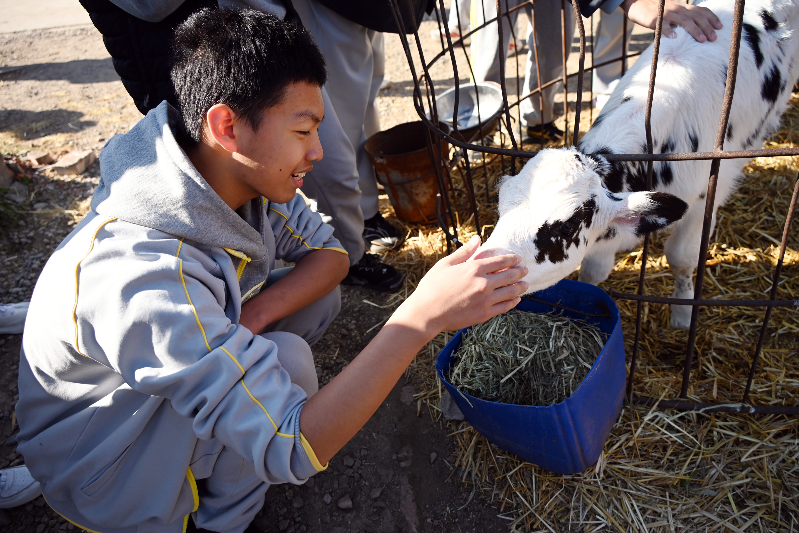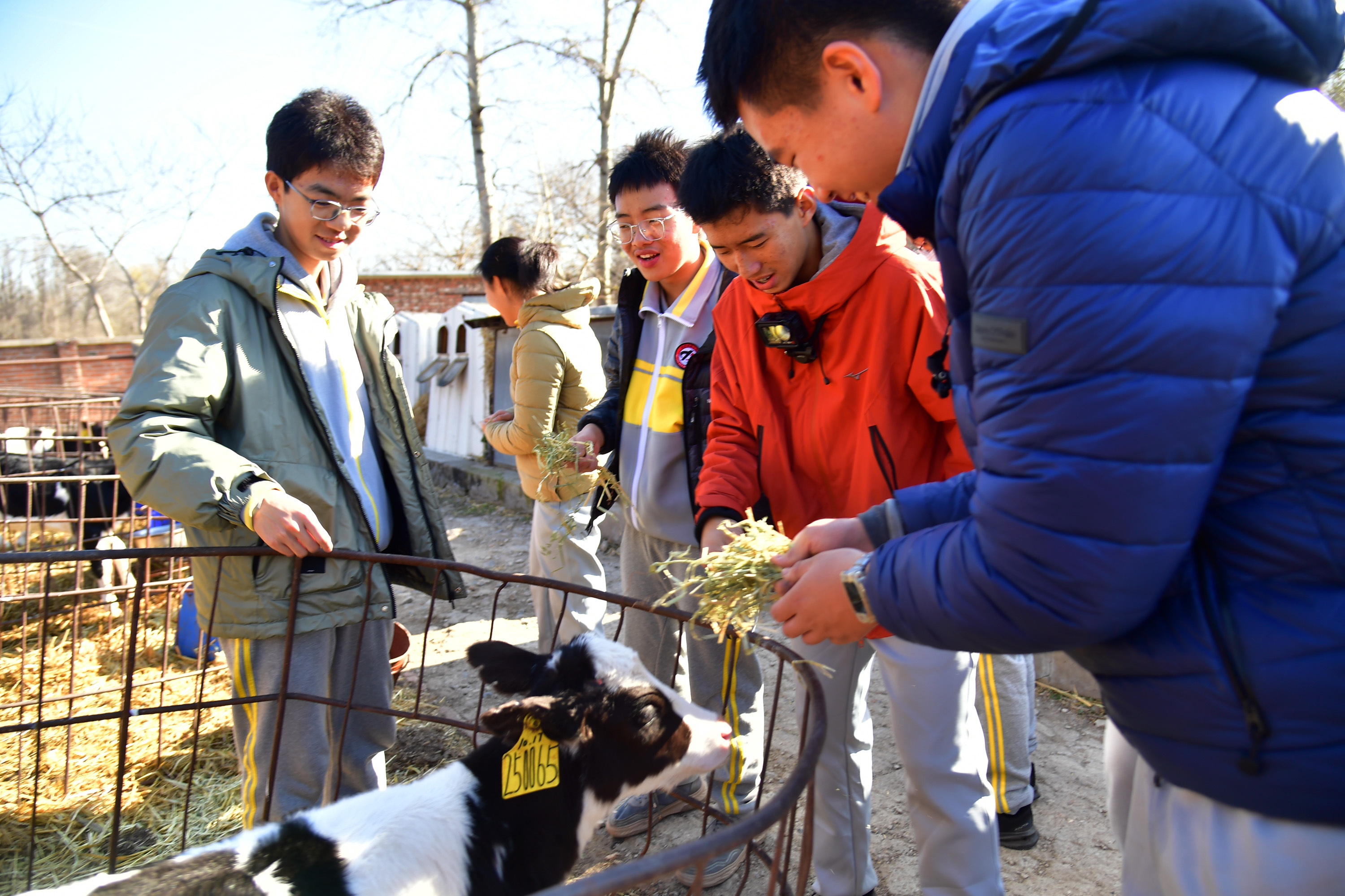 在農耕體驗課程中,同學們走進田間地頭,親手播種小麥、采收大白菜,親身體驗犢牛喂養、手工擠奶、石磨豆腐、推碾子等農事操作,接受了一次難忘的農業科普教育,感受到勞動的快樂和收獲。本次活動,將課堂延伸至自然與生活的廣闊天地,讓學生在勞動中學習,在體驗中成長。