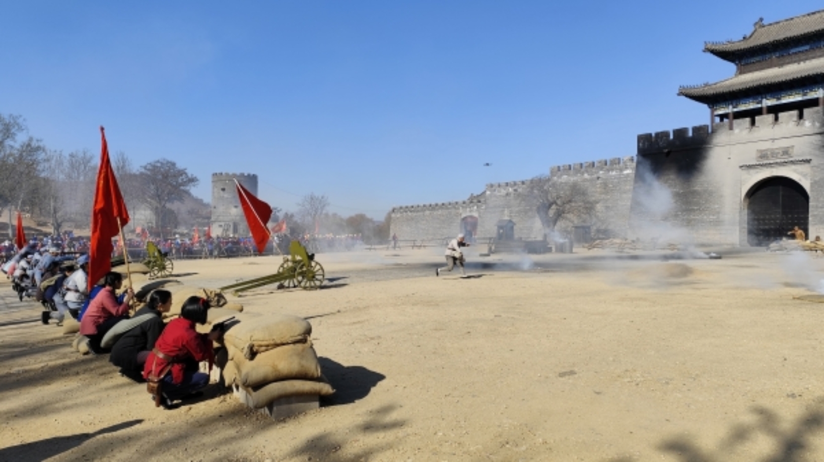在“跟著團長打縣城”環節,隨著團長一聲令下,同學們手持紅纓槍或大刀,跟隨“八路軍”隊伍向“沂州城”發起英勇沖鋒,大家各司其職、密切配合,迅速進入“戰斗狀態”。當“紅旗”插上“縣城”城樓,全場歡呼雀躍,真切體會到革命戰士浴血奮戰的艱辛,更感受到團隊協作、生死與共的磅礴力量。