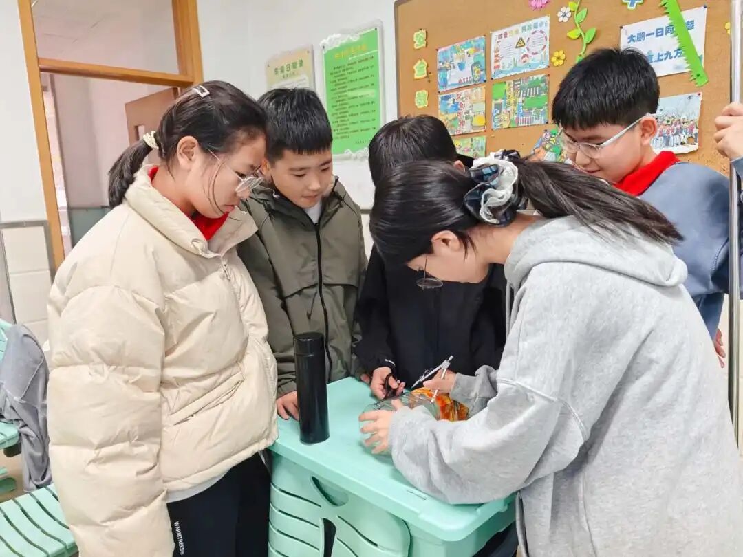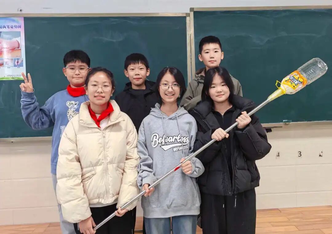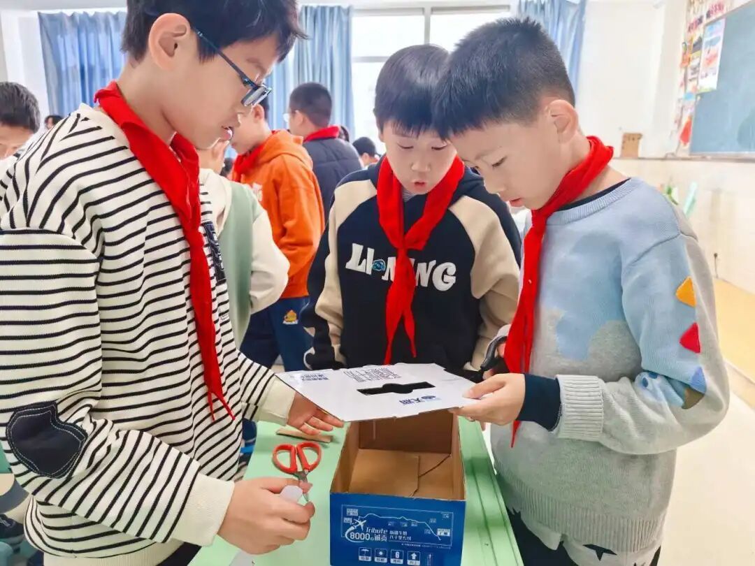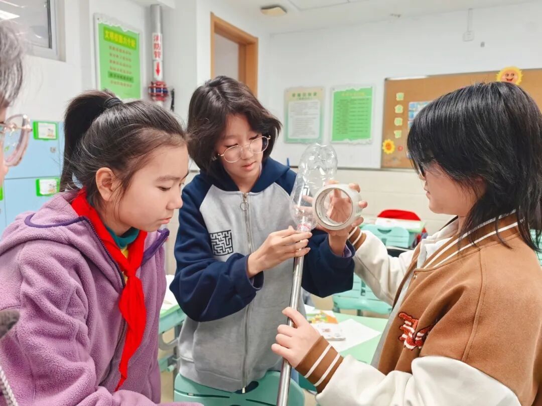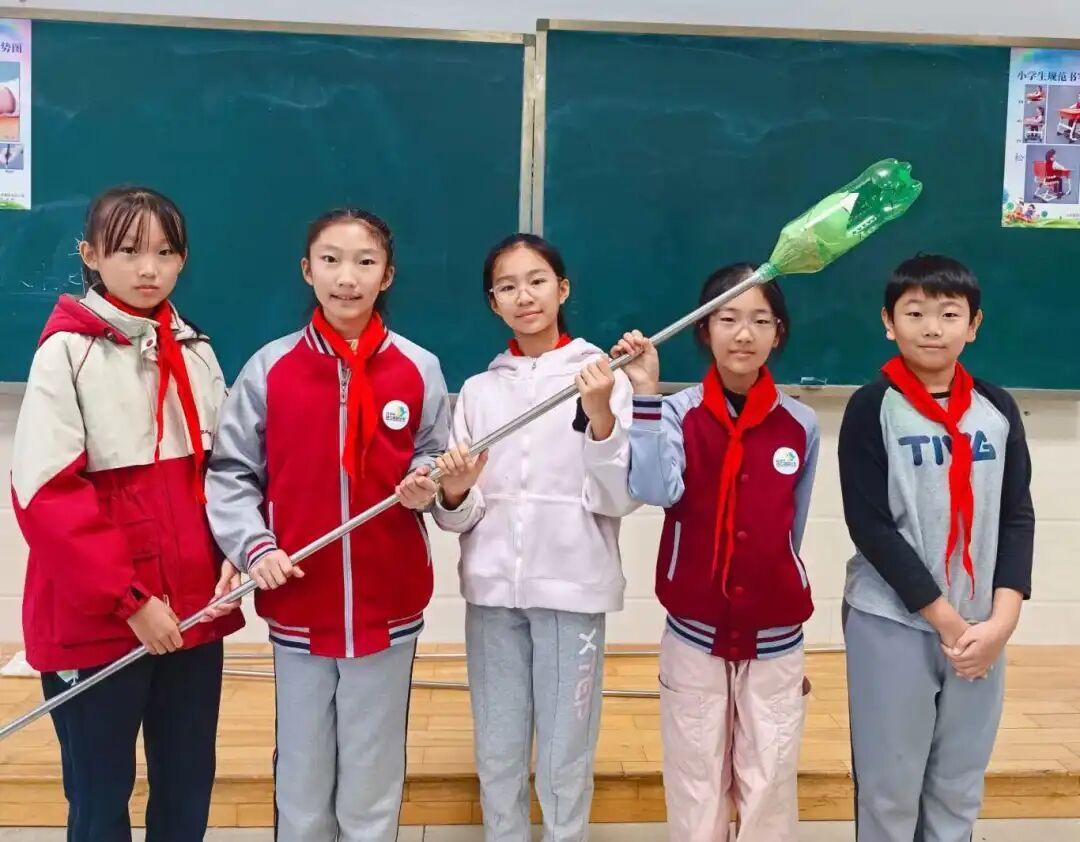 高掛枝頭的柿子,成了隊員們要攻克的第一個難題。“用長桿子!”“可怎么不讓柿子摔壞呀?”一場“摘柿子神器”的創作就此展開。隊員們帶來廢塑料瓶、膠帶,借來舊鐵桿,在老師指導下動手:剪去瓶底做“承接器”,在瓶身割卡口綁上長桿當“旋轉擰斷器”。簡陋材料在他們手中變身工具,這背后,是解決問題的萌芽,更是環保與創造力的碰撞。