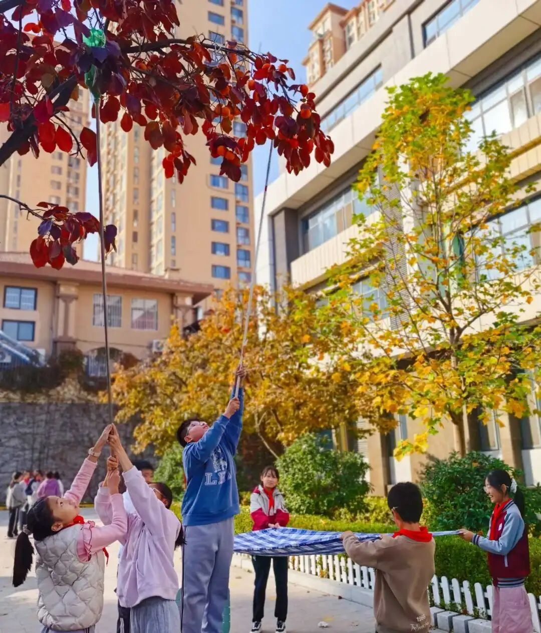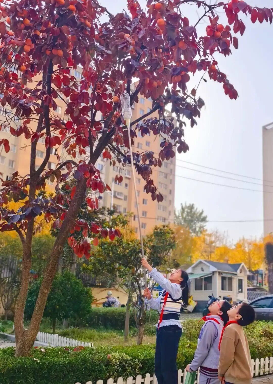 在一個陽光明媚的下午,隊員們帶上自己制作的“神器”,歡呼雀躍地來到柿子樹下。他們有的負責指揮,有的小心翼翼地將神器伸向果實,有的在樹下用布單做好接應。當第一個柿子完好無損地落入“機關”,當沉甸甸的果實從枝頭被成功摘下,隊員們的臉上綻放出無比自豪和喜悅的笑容。