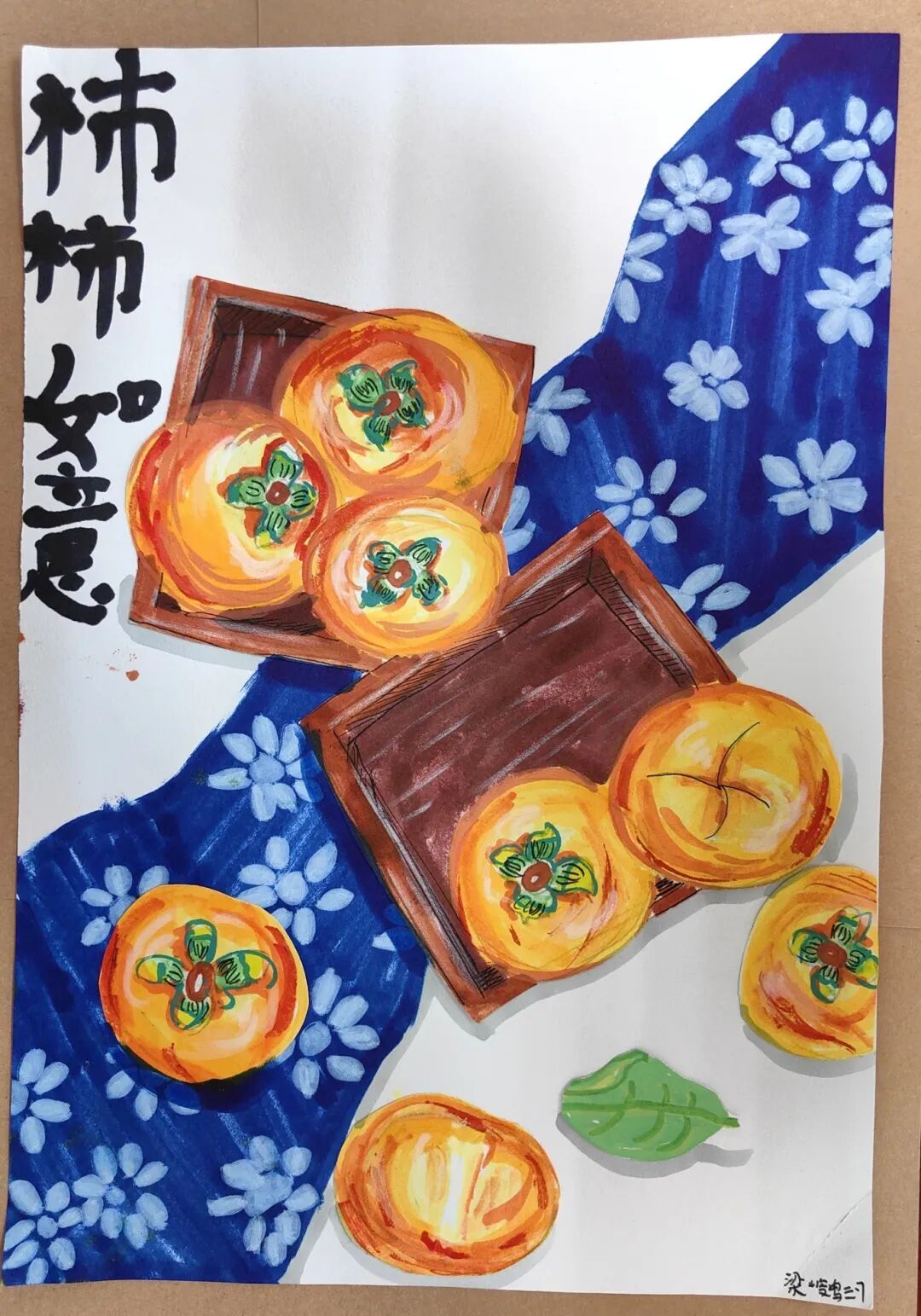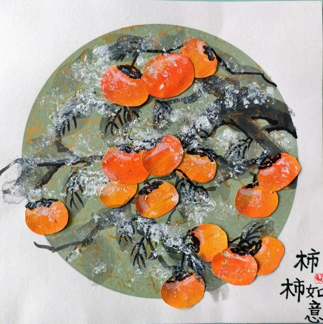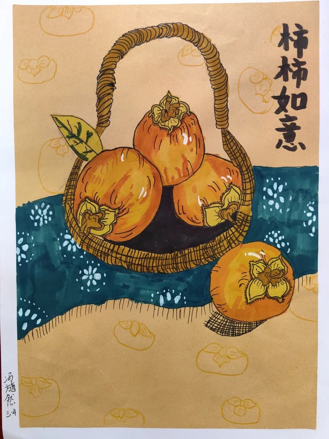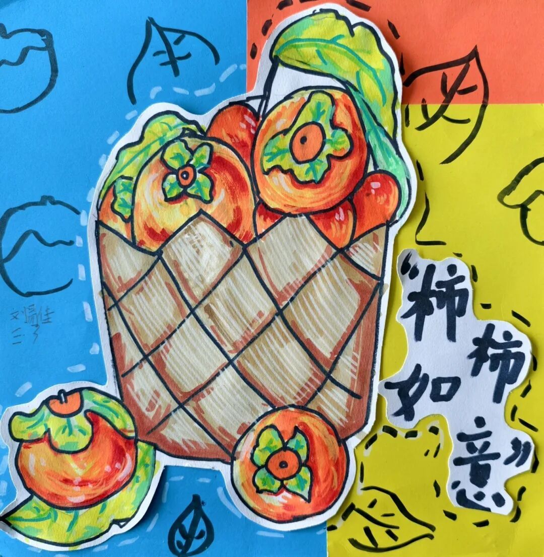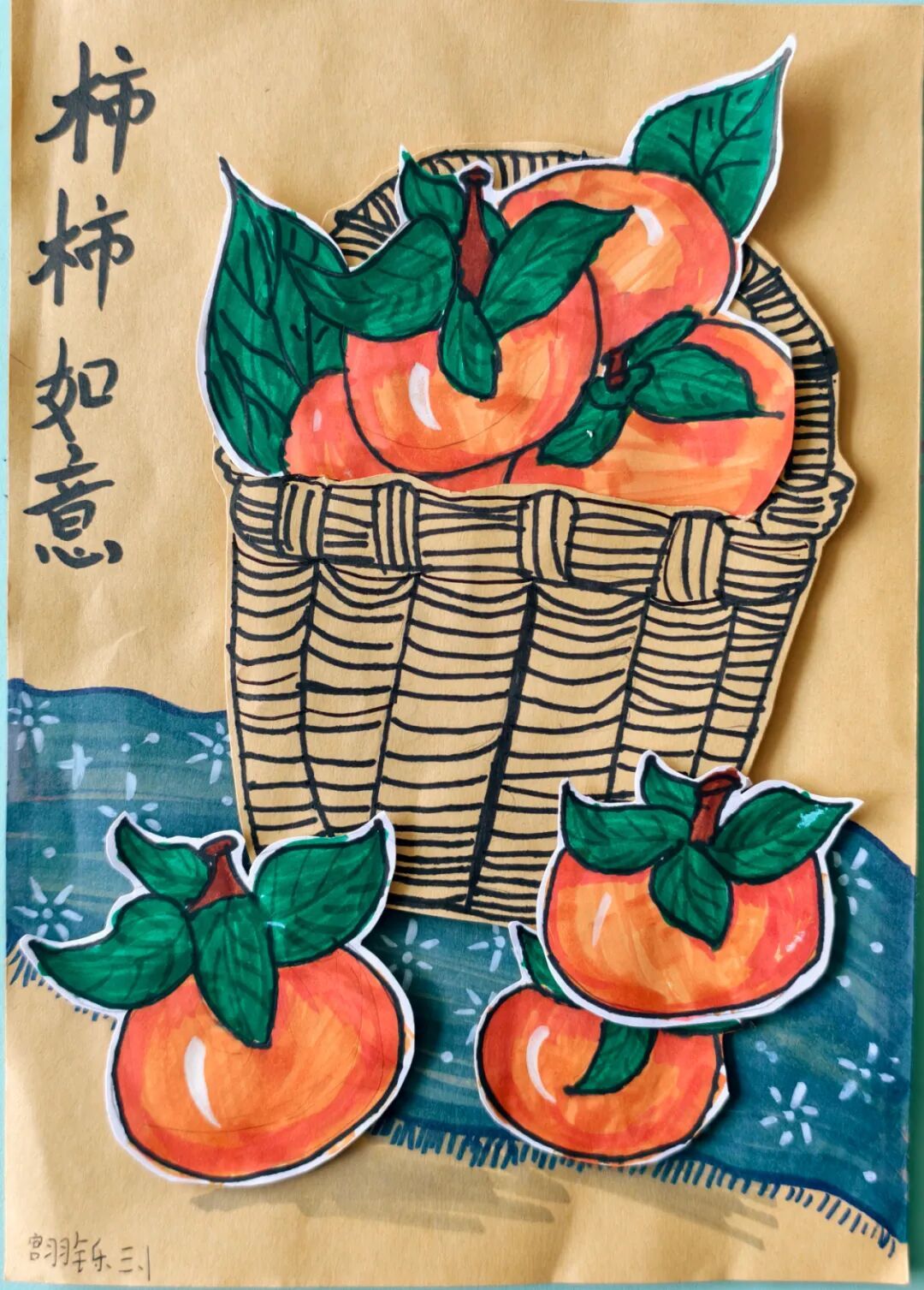 采摘下來的柿子,色彩斑斕,形態可掬,本身就是最美的靜物。隊員們鋪開畫紙,拿出彩筆,為這份秋日的美好存檔。金色的柿、紅色的柿、黃綠相間的柿……在他們的畫筆下,柿子變得靈動而富有情感。每一筆色彩,都是他們對這個秋天最真摯的解讀。