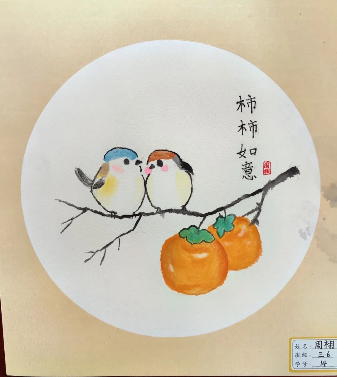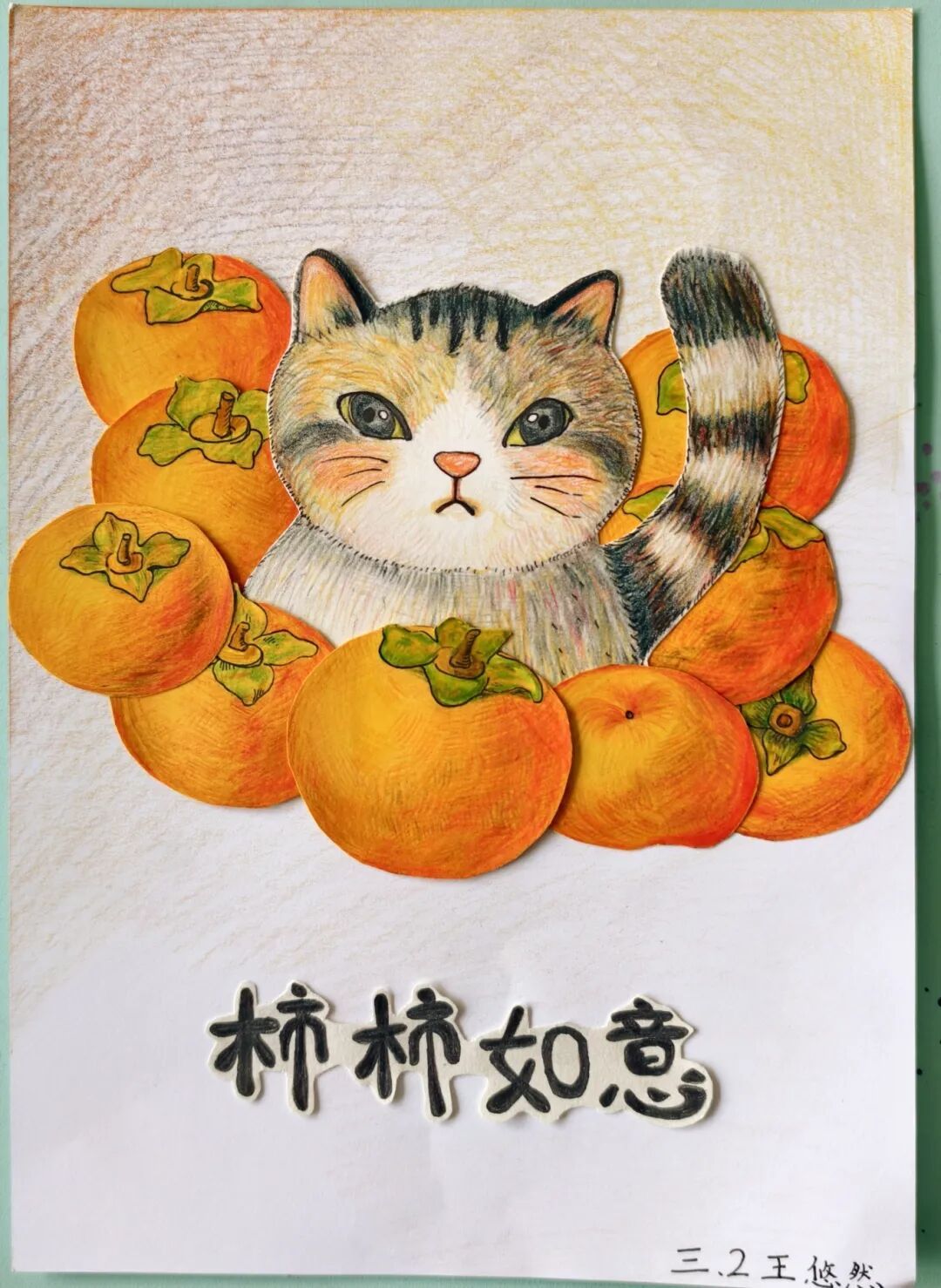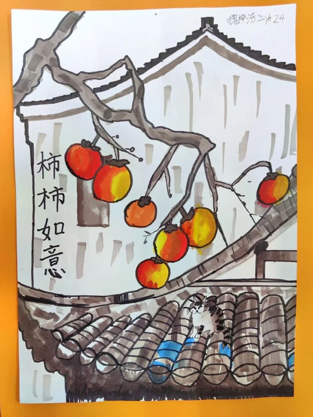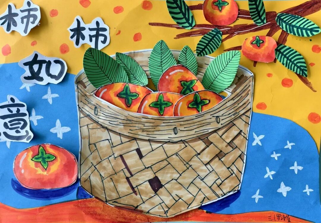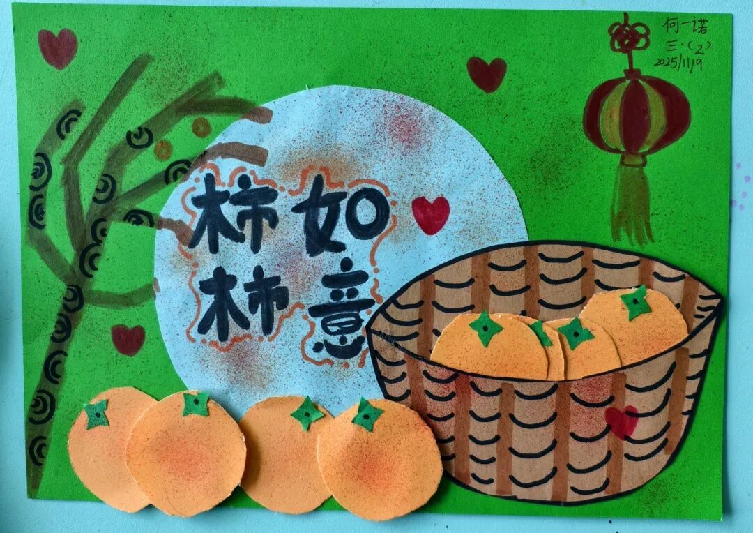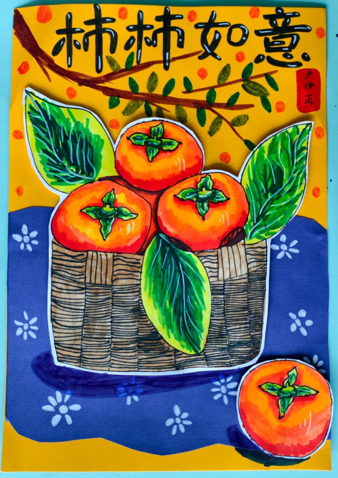采摘下來的柿子,色彩斑斕,形態可掬,本身就是最美的靜物。隊員們鋪開畫紙,拿出彩筆,為這份秋日的美好存檔。金色的柿、紅色的柿、黃綠相間的柿……在他們的畫筆下,柿子變得靈動而富有情感。每一筆色彩,都是他們對這個秋天最真摯的解讀。