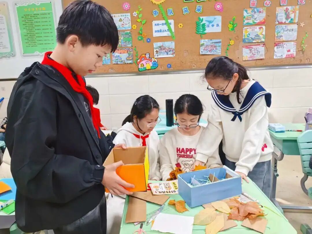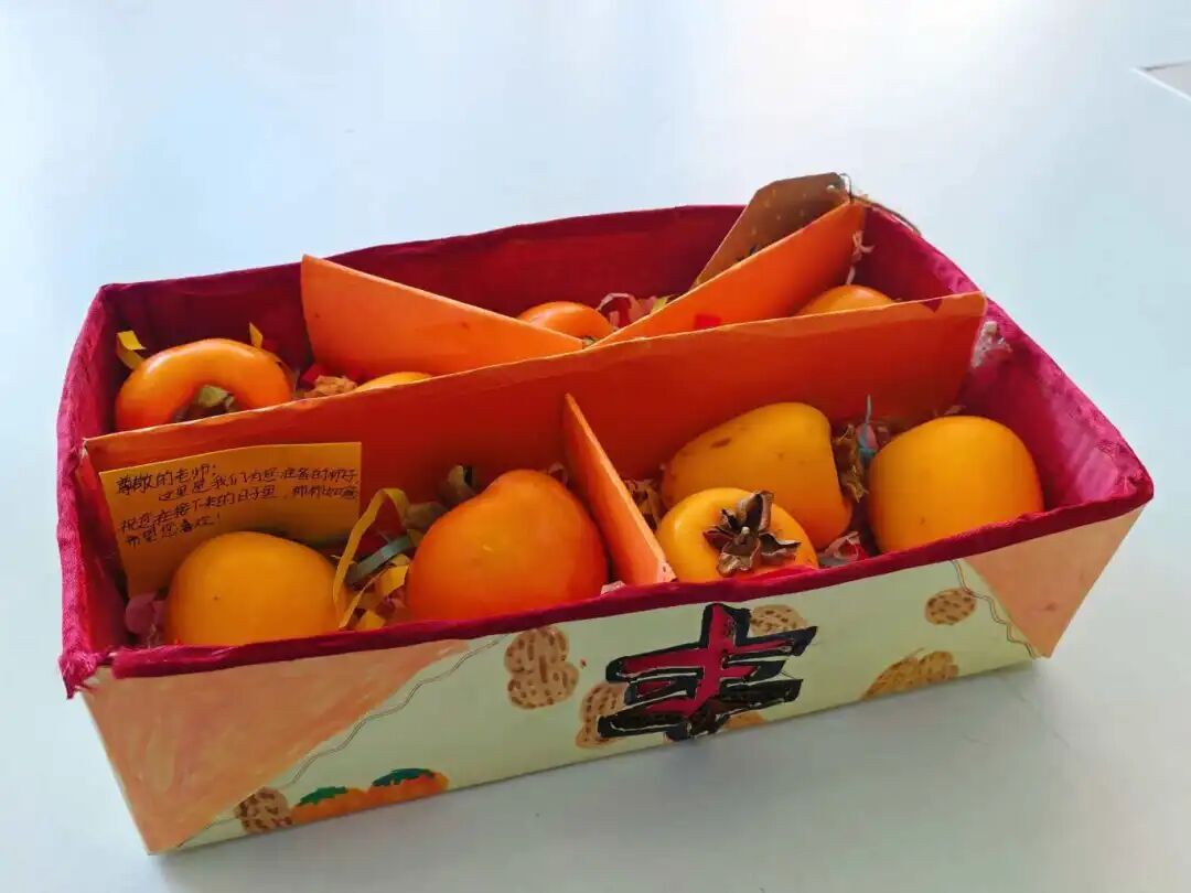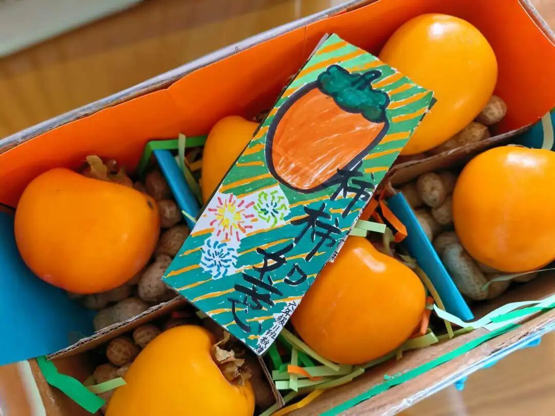 課程最后,隊員們要把秋日的柿子送給辛苦的老師。他們挑出最飽滿的柿子做禮盒:用牛皮紙包裝,稻草點綴,還畫上“事事如意” 的圖案,再認真寫下心里話 ——“老師辛苦啦,愿您‘柿柿’如意!”“這顆柿子很甜,祝您萬‘柿’如意!”小小的禮盒里,裝的不只是柿子,更是隊員們用勞動、創意和愛凝結的感恩,這是最珍貴的禮物。