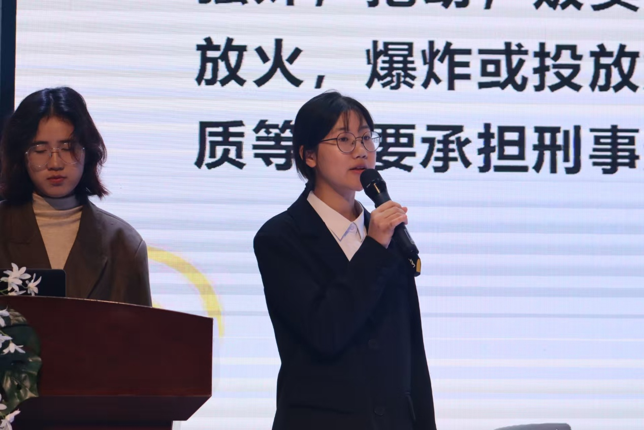 在“以案釋法”情景演繹小劇場“環節”,湖南大學法學院同學圍繞“玩火行為需謹慎”“暴力沖動要克制”“他人財產勿伸手”三個主題,在真實案例的基礎上進行趣味性演繹,并在小劇場的最后進行了法律總結。該環節以沉浸式演繹直觀展現不良行為向違法犯罪演變的風險鏈條及嚴重法律后果,鮮明的故事沖突與警示效果引發同學們強烈共鳴,促使他們對法律紅線進行深刻思考。
