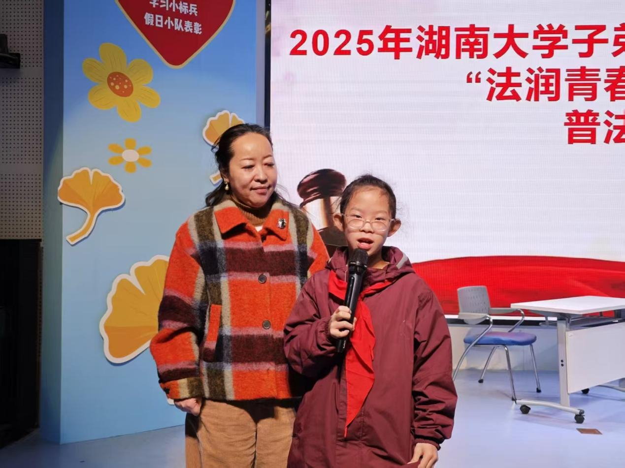 為提升小學生的法律意識,2025年12月2日,湖南大學子弟小學聯合湖南大學法學院,共同開展“法潤青春,護苗成長”主題校園普法活動。湖南大學子弟小學師生代表,湖南大學法學院相關負責人、青年志愿者協會志愿者共同參與活動。本次活動分為“預防未成年人犯罪普法小課堂”“‘以案釋法’情景演繹小劇場”以及“收獲分享”三個環節,由湖南大學法學院團委實踐部程宸同學主持。