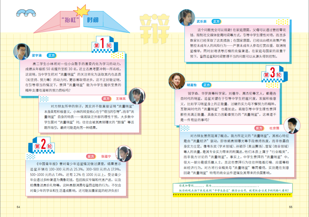 觀點(diǎn):崇拜“流量明星”對(duì)中學(xué)生的成長(zhǎng)利大于弊。